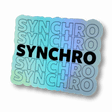 This bold holographic sticker celebrates synchronized skating with "SYNCHRO" repeated in layered typography—one line in solid black, the rest in outlined letters. The holographic finish shifts through cool blue, green, and yellow tones for eye-catching shimmer. Perfect for synchro skaters who know the power of skating as one!