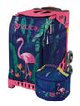 A favorite among flamingo fanatics and fun-seeking vacationers, this rolling tote trendily emits tropical vibes as it puts on a sunny show everywhere it goes.